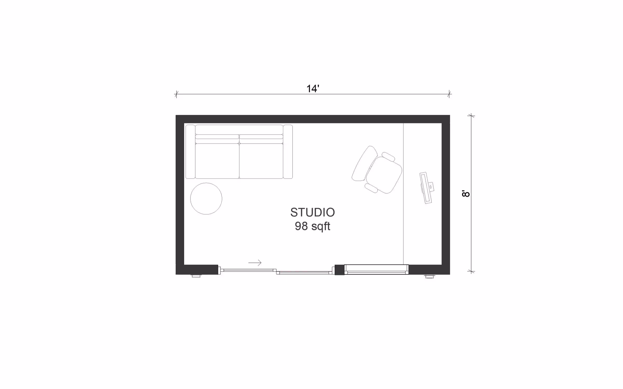 Specifically designed for California, this studio shed can be built without a permit in most counties both within and beyond the state. With 120 sqft of thoughtfully planned space, it offers a perfect balance of size and functionality.