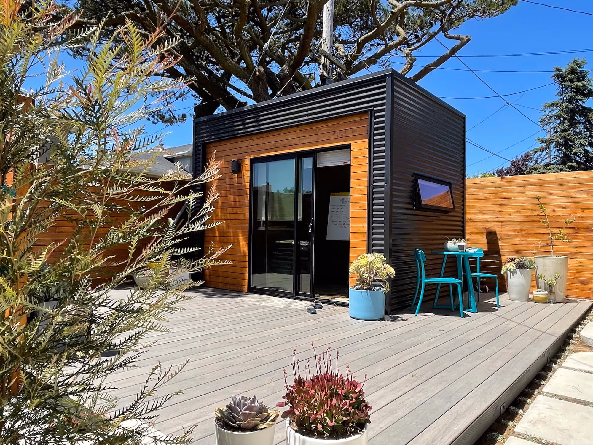ADUs typically have a bathroom and kitchen. A home office shed is a single-purpose space that doesn't have plumbing or appliances.