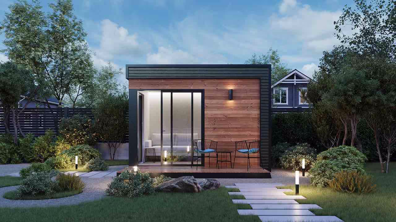 ADUs typically have a bathroom and kitchen. A home office shed is a single-purpose space that doesn't have plumbing or appliances.